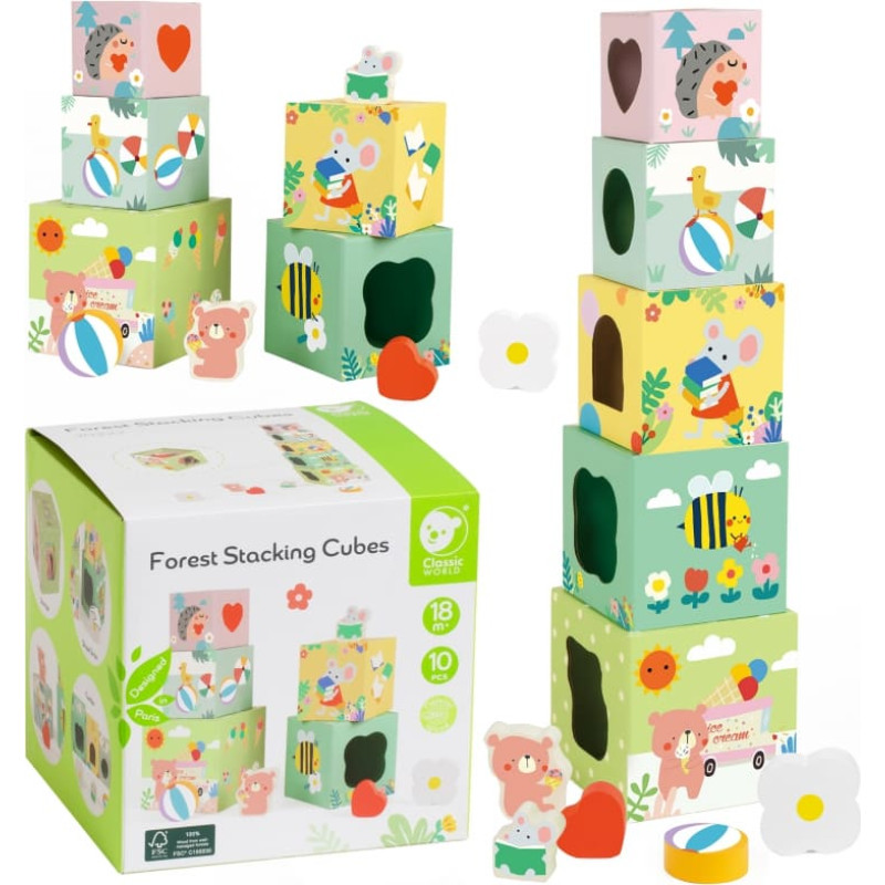 Classic World Układanka Kostki Box Leśna Piramidka 10 el. FSC