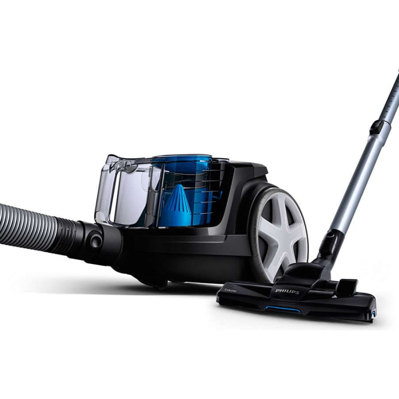 Ekskluzīvā PowerCyclone 5 tehnoloģija strauji pūš gaisu cikloniskajā kamerā, lai atdalītu putekļus. Spēcīgā virpuļojošā darbība palielina gaisa plūsmu un veiktspēju, lai panāktu ievērojamus tīrīšanas rezultātus.