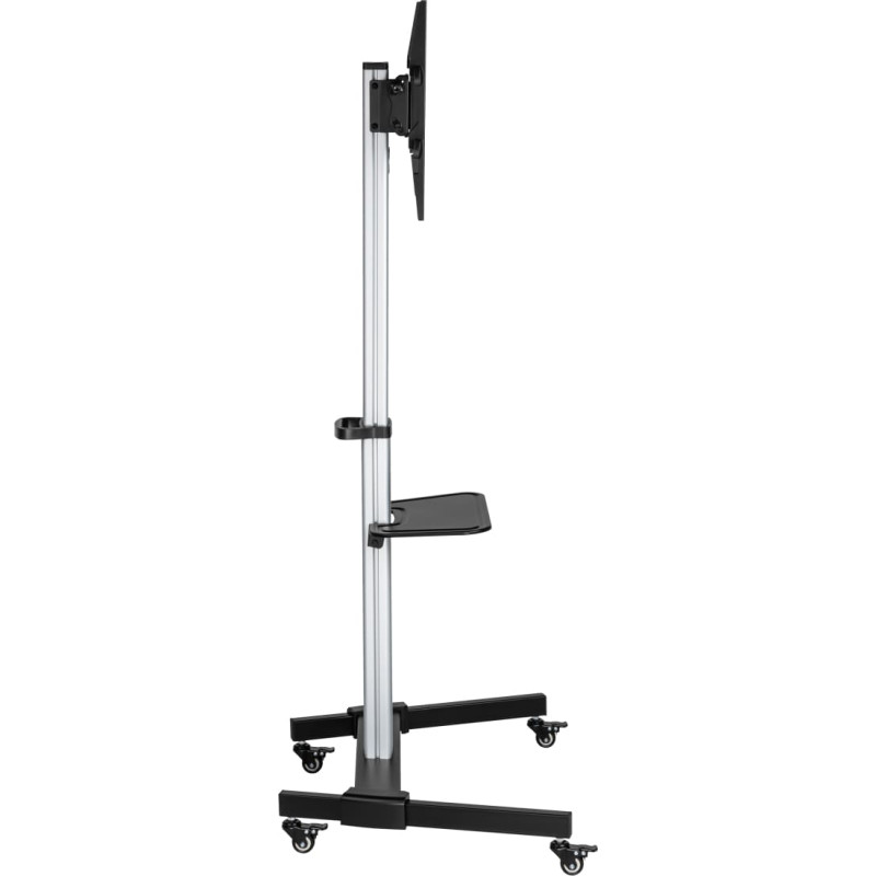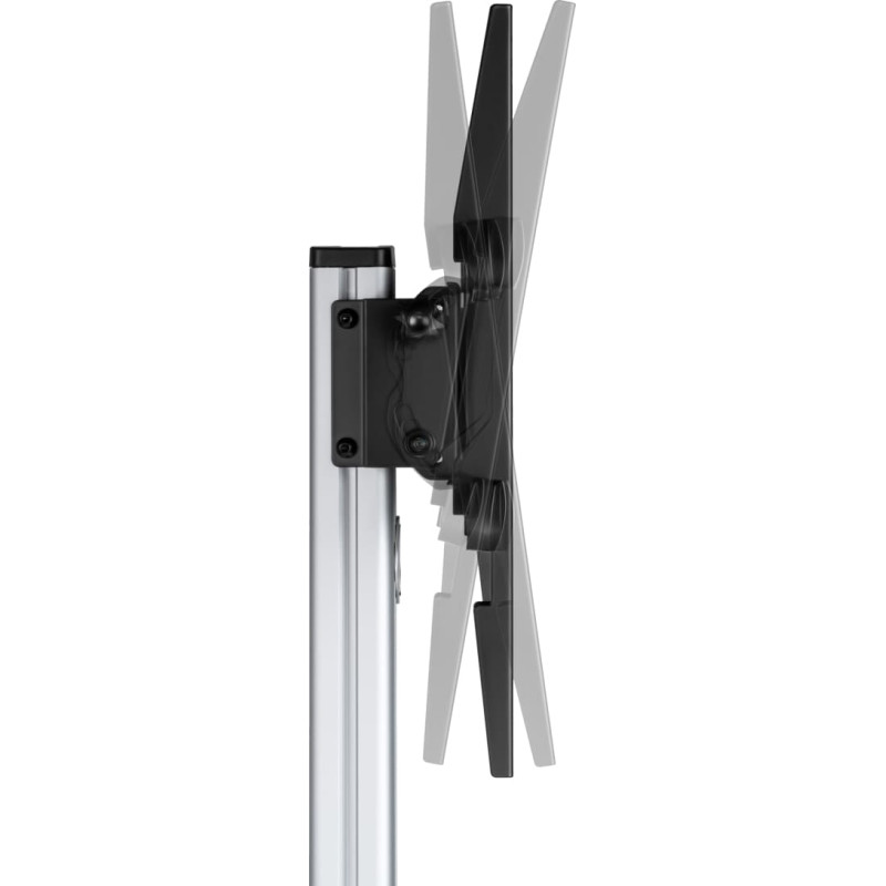 Techniniai duomenys Tvirtinimo tipas: ant grindų/mobilus stovas LCD/LED televizoriui Mažiausias VESA: 200 x 200 Didžiausia VESA: 600 x 400 Maksimali apkrova (kg): 50 Minimalus ekrano dydis: 37'' / 94 cm Maksimalus ekrano dydis: 86'' / 218 cm Vertikalus posvyris: +5° / -10° Išlenktiems ekranams: Ne Kabelių valdymas: Taip Nuimama VESA plokštė: Taip Aukščio reguliavimas: 1200-1600 mm Ekrano pasukimas: stačias / kraštovaizdis (90°) Lentynos matmenys (mm): 400x260 Lentynos apkrova (kg): 5 Lentynos aukščio reguliavimas: Taip Spalva: sidabrinė/juoda Medžiaga: plienas/plastikas/aliuminis Paviršiaus apdaila: Miltelinis dažymas Matmenys (mm): 848x610x(1420-1820) Pastaba: Montuodami atkreipkite dėmesį į VESA ir atskirų televizorių gamintojų naudojamų varžtų tipą!