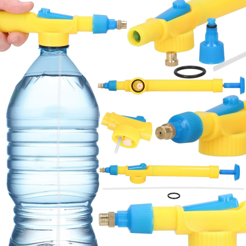 Parametrai: Prekinis ženklas: Springos® Spalva: geltona su mėlynais elementais Medžiaga: PP Ant standartinio PET butelio prisukamas purkštuvas Komplekte: 1x purkštuvas, 1x plastikinis vamzdelis, 1x atsarginis guminis sandariklis Matmenys: Bendras ilgis: min 28 cm, maks. 40 cm Skersmuo: 2 cm Rankenos skersmuo stūmoklio gale: 3,5 cm Skysčio įsiurbimo vamzdžio ilgis: 28 cm Papildoma informacija: Purškimo antgalis pagamintas iš metalo Vamzdžio ilgis lemia maksimalų buteliuko aukštį, kurį galima naudoti su purkštuvu (28 cm) – vamzdelis turi siekti butelio dugną Siurblys priverčia orą į butelį, mygtukas naudojamas vandens purškimui