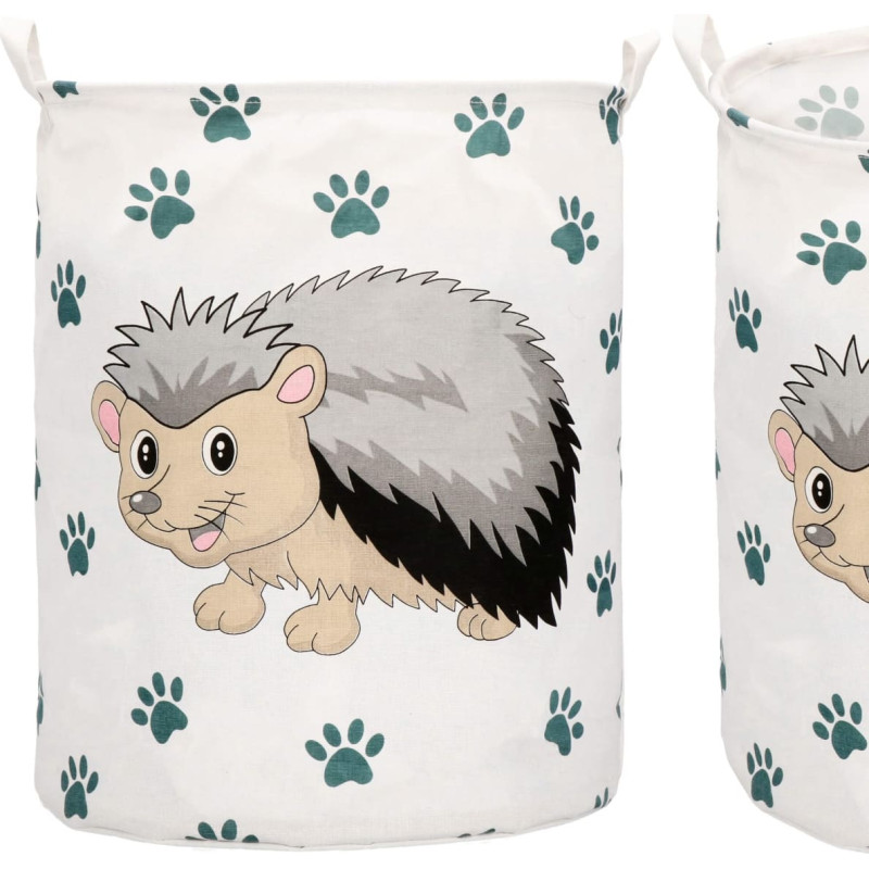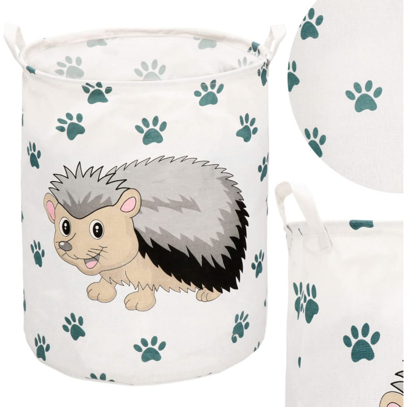 Gamintojas: Springos Spalva: daugiaspalvė Išorinė medžiaga: 70% linas, 30% medvilnė Paskirtis: saugojimui Raštas: ežiukas + letenėlės Aukštis: apytiksl. 50 cm Skersmuo: apytiksl. 40 cm Talpa: 80l