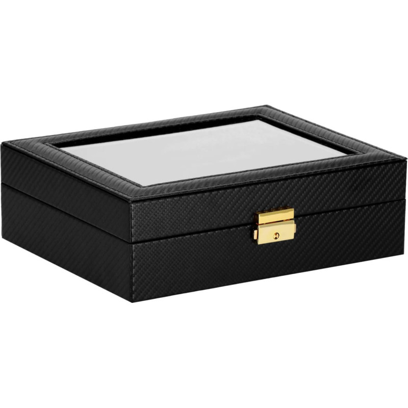 Pagrindinės savybės: medžiaga: mdf + ekologiška oda zomšinis karsto vidus karsto spalva: juoda spalva viduje: juoda užsegimo spalva: auksinė susiuvimo spalva: juoda 10 laikrodžių užsegimo tipas: valdomas raktu anglies konstrukcija Uždarų dėžių dydžiai Plotis: 25 cm Ilgis: 20 cm < li> Aukštis: 8 cm Kiti matmenys: Langas: 20 x 15 cm Laikrodžio pagalvėlės: 7 x 4 , 3 x 3 cm Vienas skyrius: 10 x 4,5 cm