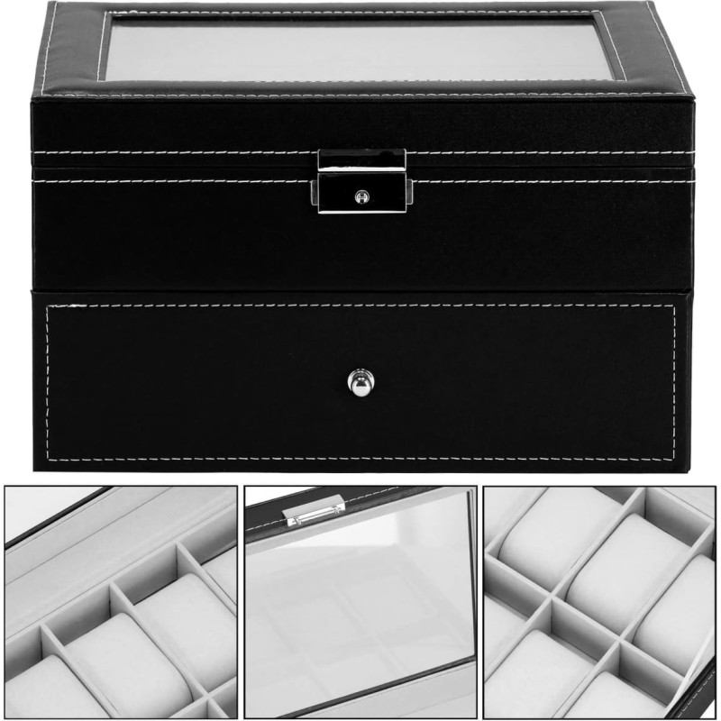 Parametrai: Prekinis ženklas: Springos Spalva: juoda/kreminė Apkaustų spalva: sidabrinė Apdaila: siuvimas Užsegimas: užraktas su raktu Medžiaga: eko oda / aksomas Konstrukcija: MDF Laikrodžių skaičius: 20 Medžiaga: MDF, eko oda, aksomas Išorės spalva: juoda su balta apdaila Vidaus spalva: smėlio spalvos Apkaustų spalva: sidabrinė Uždarymo tipas: užraktas su raktu Sulenktos bagažinės išmatavimai: 28 x 20 x 16,5 cm Papildomai: atidarytas bagažinės aukštis: 33,5 cm skyriaus dydis: 5 x 9 cm lango dydis: 22 x 14 cm