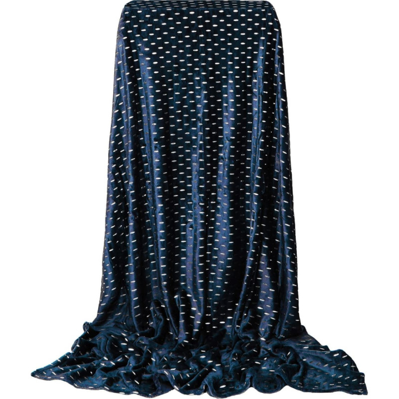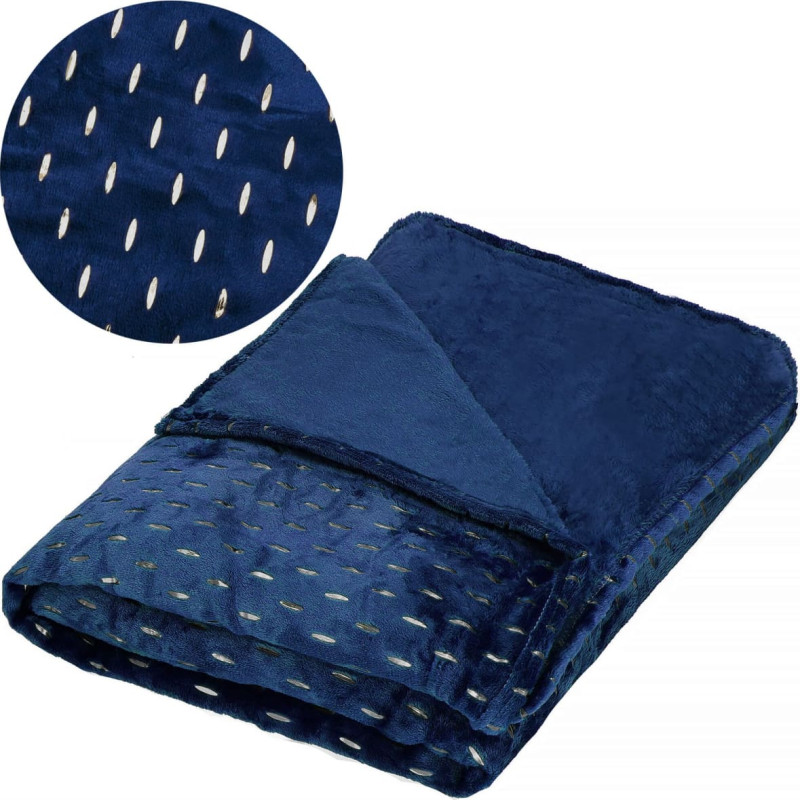 Medžiaga: 100% poliesteris Spalva: tamsiai mėlyna + sidabrinė Antklodė apvyniota elegantišku pilku kaspinu Matmenys: Visas ilgis: 220 cm Bendras plotis: 200 cm Medžiagos storis: 3 mm Papildoma informacija: Skalbti 40 laipsnių temperatūroje Nebalinti Nedžiovinkite džiovyklėje Nelyginkite Nevalyti cheminiu valymu