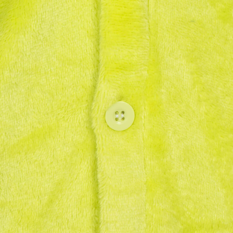 Raštas: drakonas Medžiaga: poliesteris 100% Spalva: daugiaspalvė Dydis: 130-140 cm Gobtuvas nenuimamas, be virvelių Kišenių skaičius: 2 Užsegimo tipas: 1x užtrauktukas (nugaroje), 1x sagos (priekyje) Papildomai: gražus dizainas – akys, nosis, ausys ir uodega Matmenys: Visas ilgis su gobtuvu: 145 cm Visas ilgis be gobtuvo: 120 cm Plotis po pažastimis: 49 cm Kojos ilgis: 47 cm Rankovės ilgis: 46 cm Uodegos ilgis: 41 cm