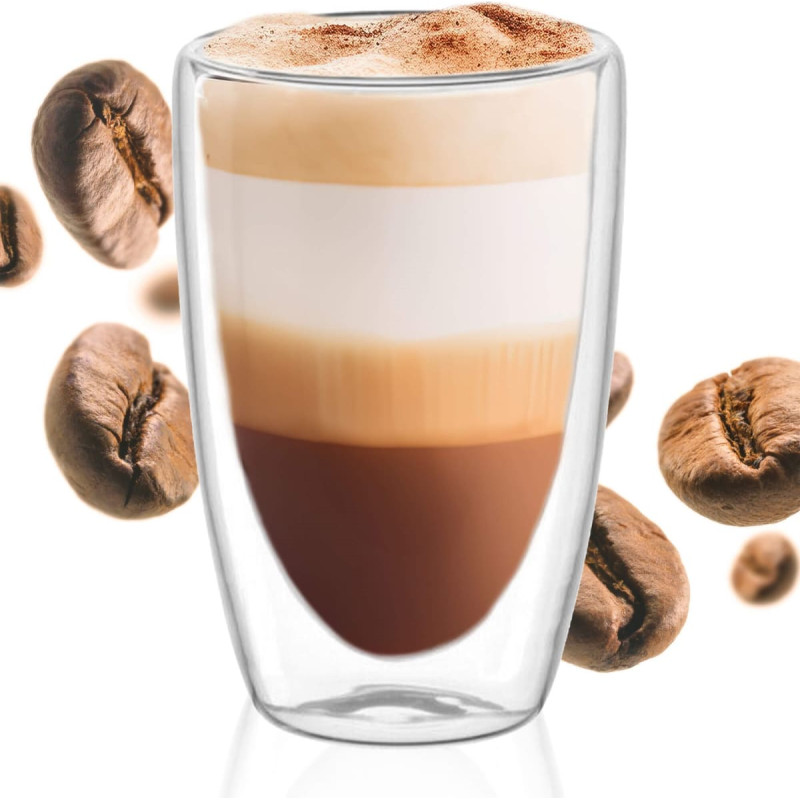 Tipas: dvisienis stiklas Talpa: 480 ml Kiekis 1 vnt. Medžiaga: stiklas Kontakto su maistu sertifikatas Matmenys: Visas aukštis: 14 cm Skersmuo: apytiksl. 8 cm Skersmuo apačioje: 6 cm Gylis: apytiksl. 13 cm Stiklo apvado storis: apytiksl. 8 mm Papildoma informacija: Neplaukite indaplovėje Nenaudokite mikrobangų krosnelėje Šilumos izoliacija dėl dvigubų sienų