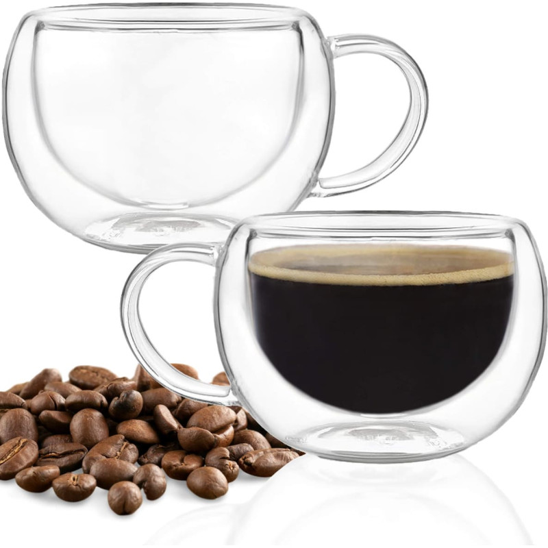 Tipas: dvisienis stiklas Talpa: 300 ml Kiekis 1 vnt. Medžiaga: stiklas Kontakto su maistu sertifikatas Matmenys: Visas aukštis: 8 cm Skersmuo: apytiksl. 8,3 cm Skersmuo apačioje: apytiksl. 6 cm Gylis: apytiksl. 7 cm Rankenos plotis: 4 cm Stiklo apvado storis: apytiksl. 1 cm Rankenos storis: 4 mm Stiklo plotis su rankena: apytiksl. 14 cm Papildoma informacija: Neplaukite indaplovėje Nenaudokite mikrobangų krosnelėje Šilumos izoliacija dėl dvigubų sienų