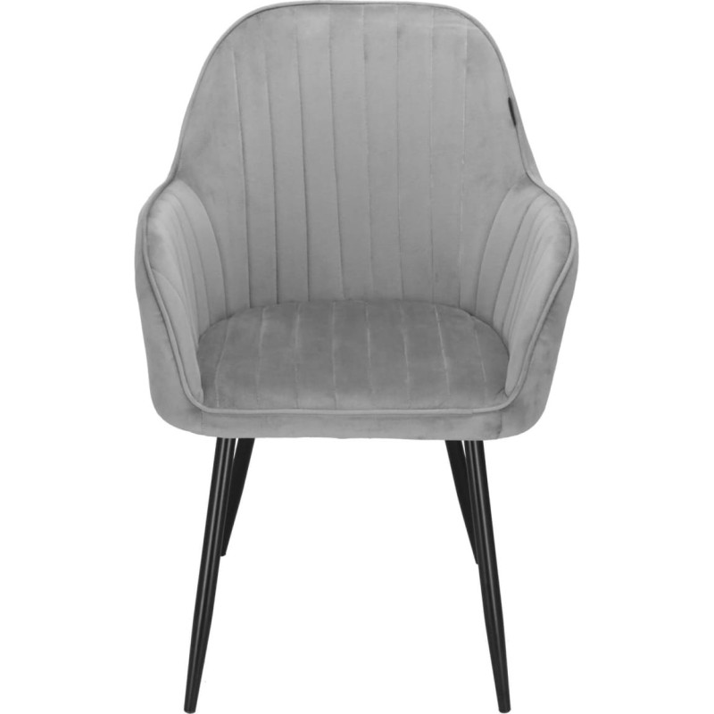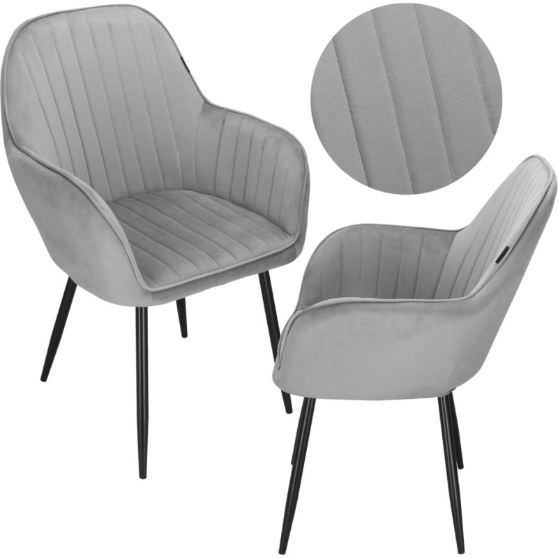 Pagrindiniai duomenys: Prekinis ženklas: Springos® Spalva: pilka, juoda Sėdynės medžiaga: poliesteris (audinio tipas: veliūras) Kojos medžiaga: metalas Apmušalų spalva: pilka Kojų spalva: juoda Papuošimo tipas: susiuvimas išilgai kėdės ilgio Pilnai apmuštas atlošas ir sėdynė Savarankiško surinkimo gaminys su pridedamomis instrukcijomis Pridedami visi komponentai ir surinkimo įrankiai Kėdės kojos su plastikiniais dangteliais Maksimali apkrova: 80 kg Matmenys: Bendras aukštis: apytiksl. 85,5 cm Atlošo aukštis: apytiksl. 46 cm Porankio ilgis: apytiksl. 35 cm Aukštis nuo porankio iki sėdynės: 22 cm Atlošo plotis plačiausioje vietoje: 52 cm Atlošo plotis siauriausioje vietoje: 36 cm Sėdynės plotis: 43 cm Sėdynės gylis: 43 cm Sėdynės storis: 5,3 cm Aukštis nuo žemės iki sėdynės: 45 cm Atstumas tarp kojų pločio: 44 cm Atstumas tarp kojų gylyje: 46 cm Kojos skersmuo: 17 - 25 mm (susiaurėjimas žemyn)
