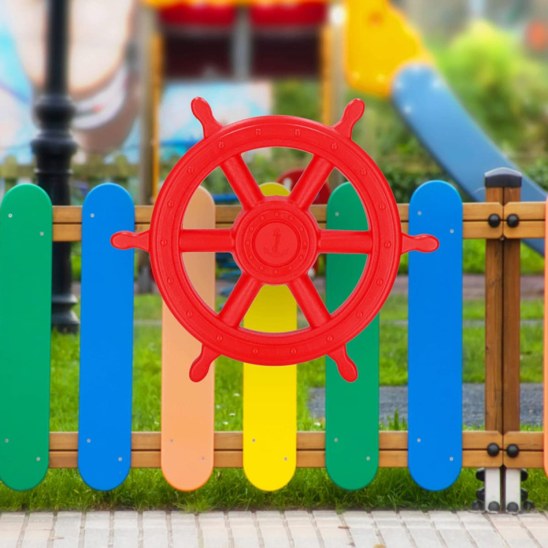PAGRINDINĖ INFORMACIJA Prekinis ženklas: Springos® Raudona spalva Medžiaga: plastikas CE sertifikatas Tipas: žaidimų vairas - žaidimų aikštelės elementas Netinka vaikams iki 3 metų amžiaus Produktas skirtas savarankiškam surinkimui, komplekte surinkimo elementai Matmenys: Bendras skersmuo (su rankenomis): 53 cm Storis centrinėje dalyje: 8 cm Storis išorinėje dalyje: 6 cm Išorinių rankenų ilgis: 6 cm Išorinio apskritimo plotis: 5 cm Vidinio apskritimo plotis: 4,5 cm Kronšteino storis: 4 cm Raudonos dangtelio skersmuo: 7 cm Juodos spalvos tvirtinimo elemento skersmuo: 9 cm Papildoma informacija: Į komplektaciją įeina: vairas, raudonas priekinis dangtelis, juodas tvirtinimo prie sienos elementas, 2x varžtai + poveržlės elementui pritvirtinti prie sienos, 1x varžtas + veržlė ratui tvirtinti