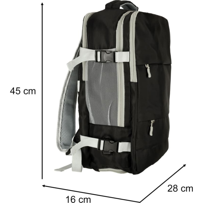 Ceļojumu mugursoma lidmašīnai ūdensizturīgs USB kabelis 45x16x28cm melns
