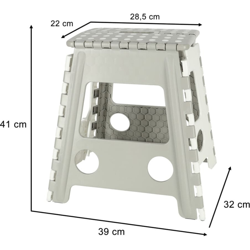 Neslīdošs saliekams taburete augsts 39cm gaiši pelēks