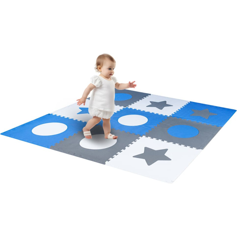 Putu puzles paklājs bērniem 180x180cm 9 gabali pelēki zils