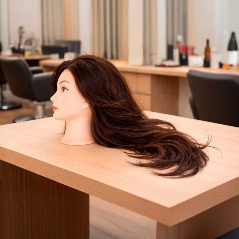 Friziera mācību galva dabīgie mati brūni