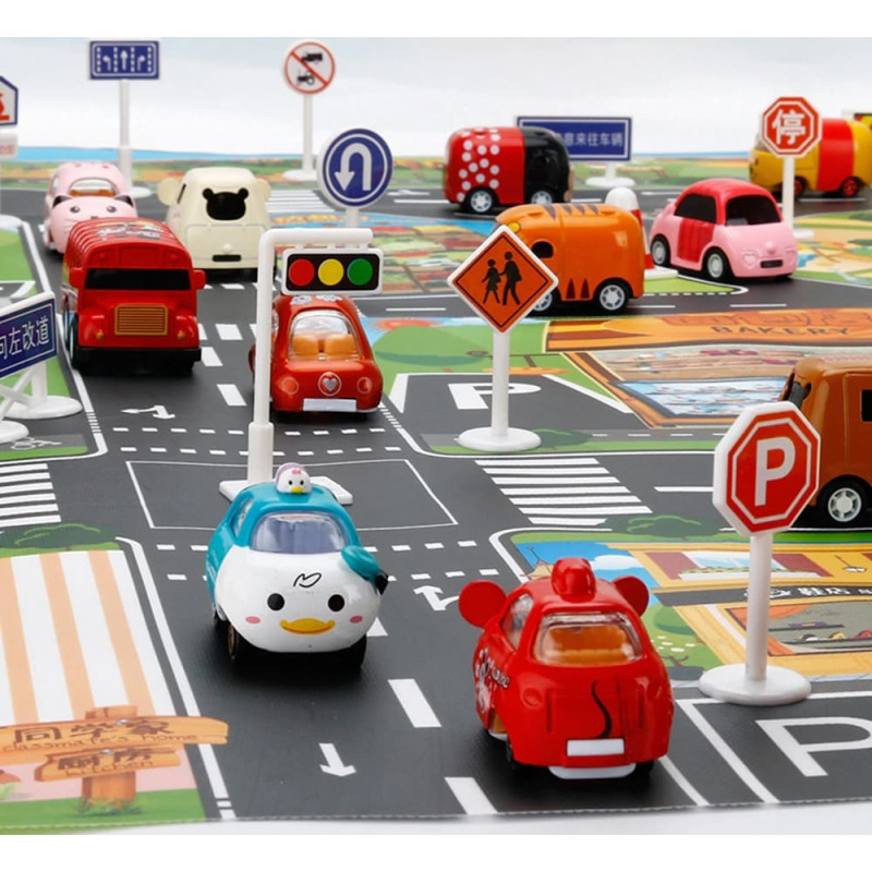 Pilsētas ielu + ceļa zīmes ūdensizturīgs krāsu paklājs 130x100cm