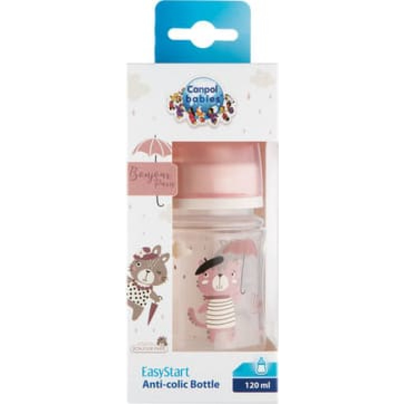 Canpol Babies CANPOL 35/231 Butelka szeroka antykolkowa 120ml Bonjour różowa
