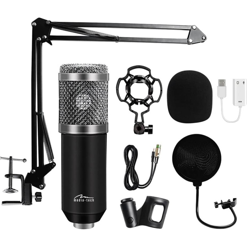 Profesionalus mikrofono rinkinys srautiniam perdavimui ir studijiniam įrašymui Kondensatoriaus mikrofono technologija Kryptinis Dažnio atsakas: 20-20000Hz Jautrumas: -32dB +/-1dB (0dB=1V/Pa esant 1kHz) Varža: 150Ω ± 30% Aliuminio korpusas Kempininė danga Sulankstomas metalinis stovas su stalo krašto rankena Antivibracinis krepšelis Atsukamas filtras ant elastinės rankenos Profesionalus XLR 240 cm XLR laidas su 3,5 mm mini lizdo kištuku Pridedama USB garso plokštė (suderinama su Windows 8/10 32/64 bitų) Mikrofono dydis: 160x46mm Mikrofono svoris: 179g