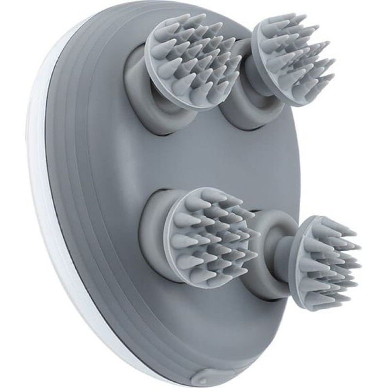 Prietaisas švelniam ir atpalaiduojančiam galvos masažui Profesionalaus pirštų masažo modeliavimas Puikiai tinka galvos odos, smakro ir kaklo savimasažui Padeda nuo migrenos, nuovargio, galvos svaigimo 4 silikoniniai pasukami antgaliai su smaigaliais 2 masažo greičiai Maitinimas: USB-A > mikro USB (kabelis komplekte) Akumuliatorius: Ličio jonų akumuliatorius, skirtas naudoti iki 3 valandų vienu įkrovimu (20 minučių intervalais) Įkrovimo laikas: ~3-4 val Matmenys: 90x107x77mm Svoris: 219g