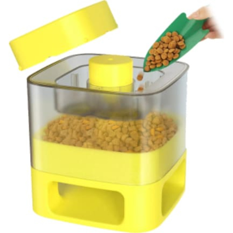 DOGGY VILLAGE Šunų arba kačių ėdalo dozatorius - automatinis naminių gyvūnėlių švediškas stalas MT7130Y (geltonas)   Mechaninis sauso maisto dozatorius šunims ar katėms, valdomas augintinio   Specifikacija Mechaninis sauso maisto dozatorius Dalis maisto išleidžiama paspaudus didelį mygtuką letenėle Puikiai tinka kaip lesyklėlė ir žaislas Tinka šunims ir katėms Siurbtukai neleidžia įrenginiui judėti Medžiaga: ABS Veikia be baterijų ir elektros Atsparus vandeniui, lengvai valomas Matmenys: 170x185x170mm Svoris 1kg