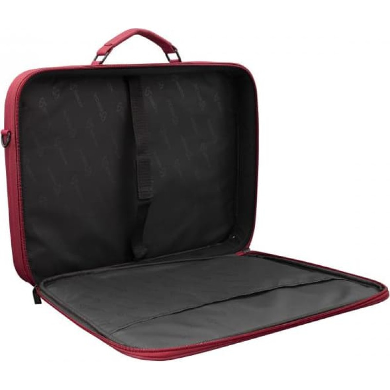 Pagrindinis skyrius su paminkštintu barjeru ir papildomu velcro užsegimu nešiojamajam kompiuteriui. Papildoma kišenė priekyje papildomiems priedams.   Techninės detalės Nešiojamojo kompiuterio dydis: 15,6 colio Spalva: Bordo Skyrių skaičius: 1 pagrindinis skyrius su vieta nešiojamam kompiuteriui su saugiu dirželiu, vidinis tinklinis skyrius priedams, priekinė kišenė su lipduku Medžiaga: 600D nailonas Matmenys (mm): 430x330x60 Papildomai: petnešėlė