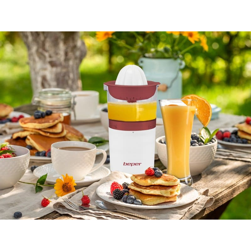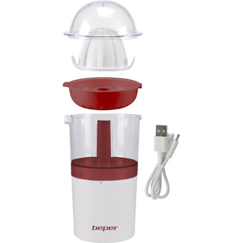 Beper P102EST100 USB pakraunama sulčiaspaudė   Praktiška įkraunama citrusinių vaisių sulčiaspaudė, leidžianti lengvai spausti citrusinius vaisius neapsunkinant laido. Galima naudoti bet kur, prie stalo ir lauke. Didelė 250 ml stiklinė surenka dviejų apelsinų sultis. Galinga ličio baterija, įkraunama naudojant pridedamą USB laidą, suteikia gaminiui autonomiškumo iki 80 minučių. Taip pat yra dulkių dangtelis, kad sultys visada būtų šviežios.   Gaminio dydis: 8,5 x 8,5 x 22 cm Medžiaga: ABS Baterija: įkraunama ličio baterija, su 80 minučių autonomijos