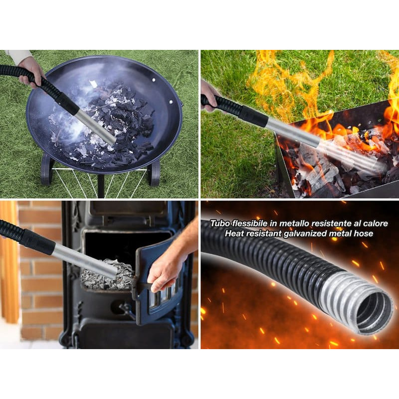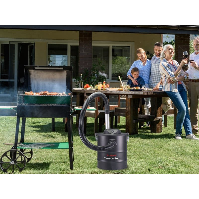 Pelenų siurblys idealiai tinka židinių, šašlykinių ir granulinių arba malkinių krosnių žarijų ir pelenų valymui. Su pūstuvo funkcija, kuri atgaivina liepsną ir nušluoja lapus, dulkes ir plaukus. Dažytas plieninis bakas, kurio talpa 15L. Įrengtas karščiui atsparus aliuminio antgalis ir metalinė žarna su išorine PVC danga. Nuimamas ir plaunamas Hepa filtras.   Techniniai duomenys Medžiaga: plieno bakas Galia: 800 W Dydis: 25 x 25 x 32