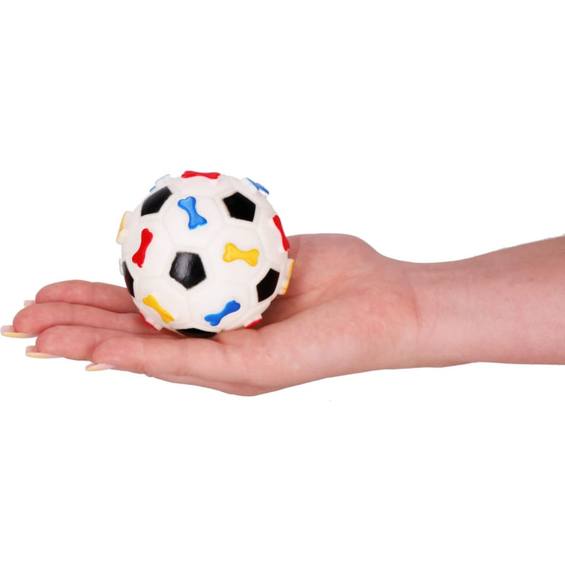 Pagrindiniai duomenys: Prekinis ženklas: Springos® Medžiaga: PVC Spalva: raudona, juoda, balta, mėlyna, geltona Tipas: šunų žaislas, garso kamuolys Matmenys: Skersmuo su iškyšomis: 7,5 cm Skersmuo be iškyšų: 7,2 cm