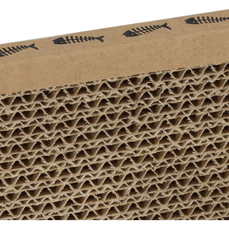 Medžiaga: kartonas Spalva: ruda + spalvingas spaudinys draskymo stulpelio šonuose Forma: šiek tiek banguota Į rinkinį įeina: draskyklė + džiovinta katžolė Matmenys: Visas ilgis: 36,5 cm Bendras plotis: 12 cm Bendras storis: 2 cm