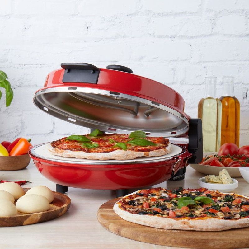 30,5 cm pica: Nelipnus ir nuimamas 30,5 cm picos akmuo autentiškai akmeninėje krosnyje picai. 5 temperatūros nustatymai: be vargo atkartoja maisto ruošimą malkinėje viryklėje. Įkaitinkite per 3 minutes: skani pica paruošta vos per 5 minutes. 1200 W: Autentiškas maisto gaminimas ant malkų ugnies be streso. Receptai internetu: Yra 2 picos mentelės ir picos pjaustyklė, kad būtų lengva virti ir patiekti.