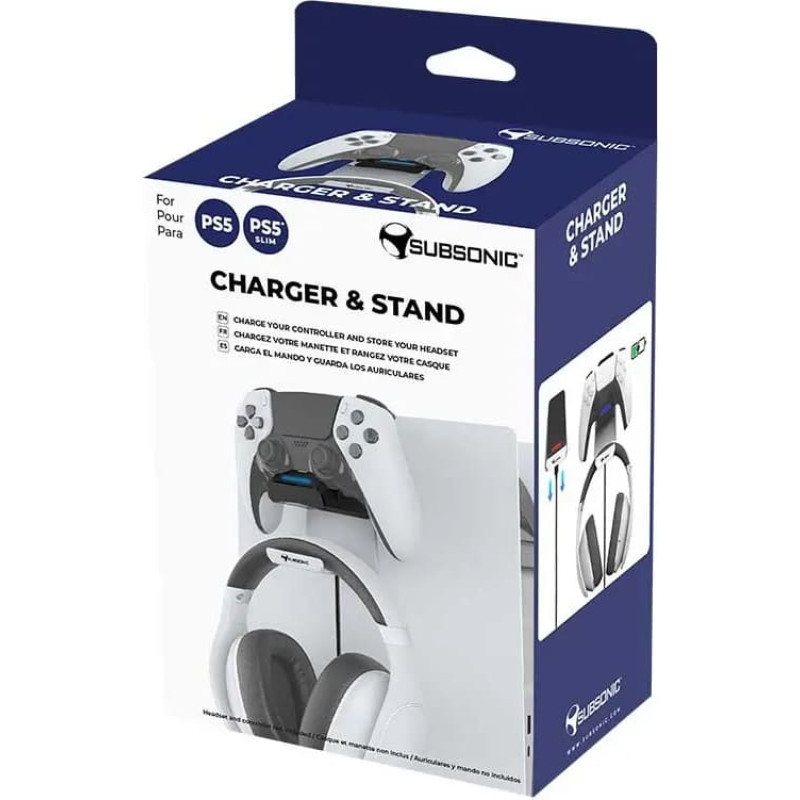PS5 valdiklio įkrovimo stotelė Įkrovimo indikatoriaus lemputė Išlankstomas ausinių laikiklis Suderinamas su PS5 ir PS5 slim Komplekte krovimo laidas
