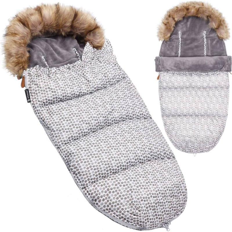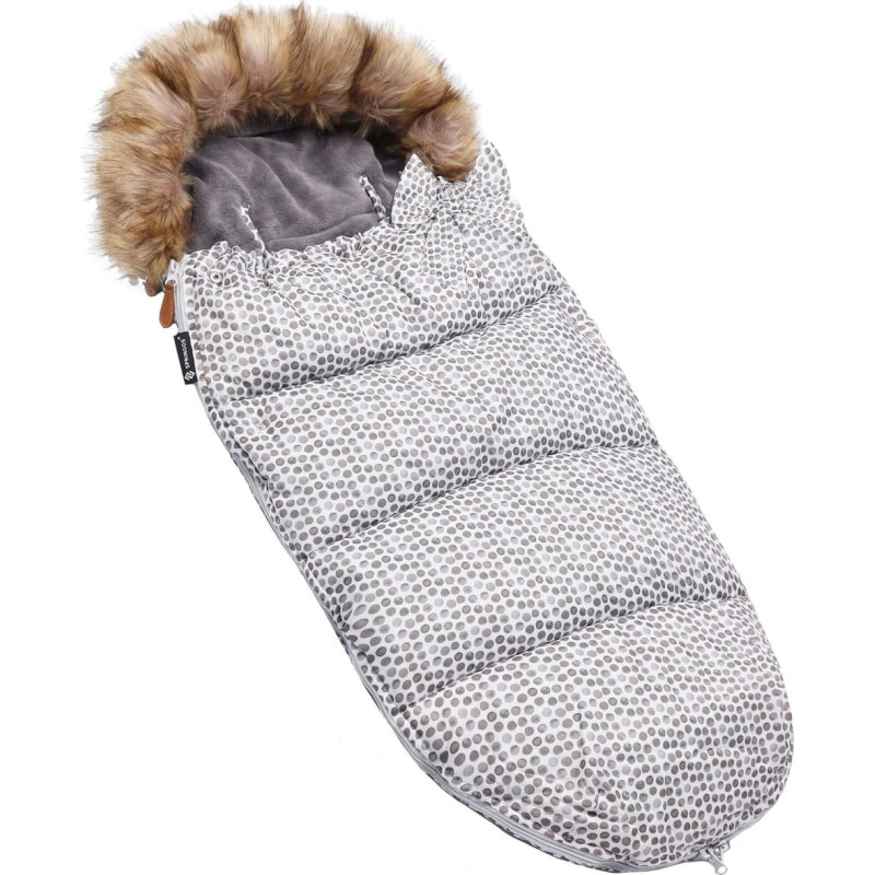 Prekės ženklas: SpringosPriekinės pusės aukštis: apytiksl. 70 cmGalinės pusės aukštis (įskaitant gobtuvą)/Bendras aukštis: 90 cmTik gaubto aukštis: apytiksliai. 25 cmMiegmaišio plotis: 45 cmMiegmaišio ilgis visiškai atsegtas: apytiksl. 160 cmIšorinės dalies medžiaga: 100 % poliesteris Vidinė medžiaga: 100 % poliesterisUžpildo medžiaga: 100 % poliesterisSintetinė medžiaga/sintetinis užpildas – nealergiškas Gobtuvas nenuimamas, be virveliųNuimama kailinė apykaklė – pritvirtinta prie gobtuvo juodomis sagomis Išorinės dalies spalva: balta su rudais taškeliaisVidinės dalies spalva: pilkas atspalvisApykaklės/kailio spalva: smėlio ir juodos spalvos atspalviai >Užsegimo tipas: užtrauktukas (2 užtrauktukai, atsegami iš viršaus ir iš apačios – po vieną užtrauktuką kiekvieno užtrauktuko apačioje ir po vieną viršuje)Nugaroje: 2 dideli skeltukai/skylutės užsegamas 2 Velcro + 4 kiti plyšiai - saugos/surinkimo diržams - išdėstyti taip, kad tiktų skirtingiems diržamsPrivalumai: vidaus užpildas minkštu, šiltu audiniu, vandeniui atspari medžiaga, lengvas; prie viršutinių užtrauktukų pritvirtintas rudas skriemulys, todėl juos lengviau trauktiPriedai: nuimamas lankelis priekinėje dešinėje pusėje