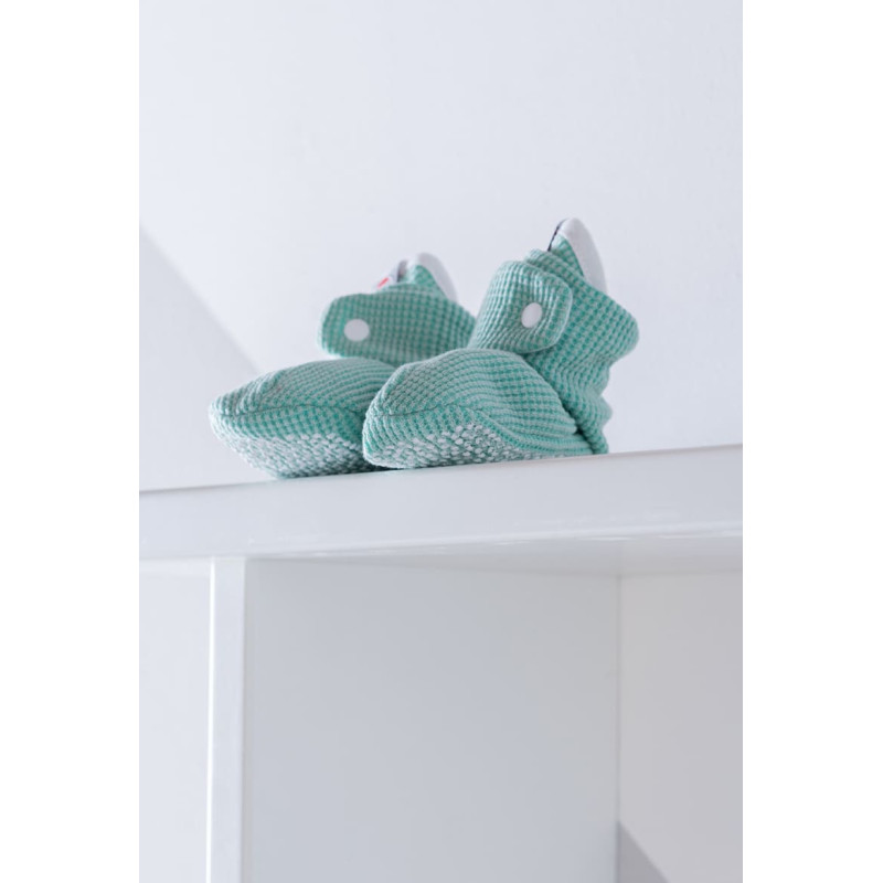 Kokvilnas mazuļu čībiņām ir dubultas spiedpogas ap potītēm. Tas padara vieglāku čībiņu uzvilkšanu kājās. Stiprinājumu kombinācijā ar elastīgumu papēža zonā novērš čībiņu nospārdīšanu vai noslīdēšanu. Čībiņas ideāli piemērotas jaundzimušajiem, jo ir ekstremāli mīkstas un elastīgas. Protams, mēs esam padomājuši arī par mazuļiem, kas mācās rāpot vai staigāt. Lielākajam izmēram (6-12 mēneši) ir pretslīdes zole.