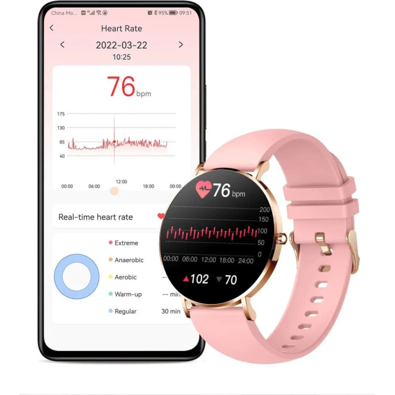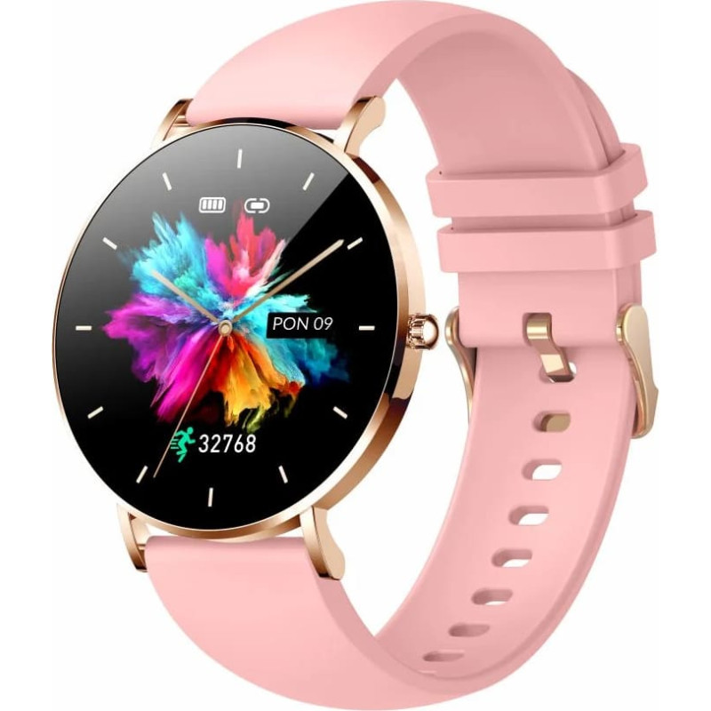 funkcijos Visada rodomas Širdies ritmo matavimas Kraujospūdžio matavimas Kraujo deguonies kiekio matavimas Žingsnių skaitiklis Kalorijų skaitiklis Miego stebėjimas Visas jutiklinis ekranas Muzikos valdymas Nuotolinis užraktas Pranešimai apie gaunamus skambučius Telefono programos pranešimai Funkcija „Rasti telefoną“. Chronometras Laikmatis Galima rinktis iš kelių ciferblatų Pranešimas apie hidrataciją Pranešimas apie sustabdymą Režimas „Netrukdyti“. Signalizacija Orų informacija Nuvažiuotas atstumas 22 sporto režimai   Techniniai duomenys Ryšys: Bluetooth Jungtys: magnetinės Sistemos suderinamumas: iOS 9.0+ / Android 4.4+ GPS: Ne Atsparumo vandeniui klasė: IP67 Dirželio medžiaga: metalas Korpuso medžiaga: metalas Korpuso plotis: 4,3 cm Korpuso aukštis: 4,3 cm Korpuso storis: 0,68 cm Dirželio ilgis: 20,9 cm Svoris: 0,025 kg Riešo apimtis: 14-20 cm Ekrano dydis: 1,32 colio Ekrano skiriamoji geba: 360x360 px RAM: 64KB Integruota atmintis: 64 MB CPU taktinis dažnis: 80000 Hz Baterijos tipas: Li-Poly Baterijos talpa: 185 mAh Jutikliai: Akselerometras Žingsniamatis Širdies ritmo monitorius Giroskopas Operacinė sistema: nuosava Belaidis įkrovimas: Ne Duomenų perdavimas: Nr