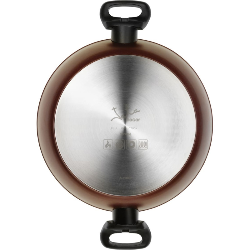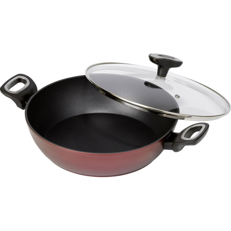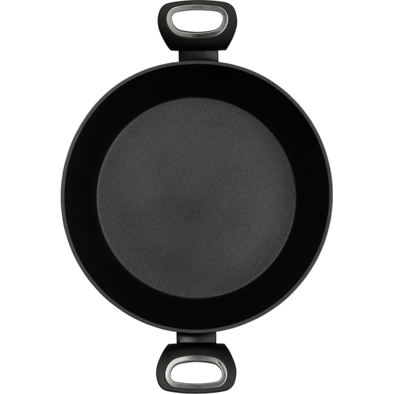 „Whitford QuanTanium®“ 3 sluoksnių nelipni danga be PFOA. "Visiška indukcija" iš apačios. Skersmuo 180 mm. Idealios šiluminės savybės. 3 mm. aliuminio kaltas korpusas. Ugniai atspari rankena. Protektorius yra įjungtas. Tinka visoms viryklėms, įskaitant indukcinę. Gilus 24 cm ilgio indas su grūdinto stiklo dangčiu. Aukštis 6,8 cm, talpa 2,4 litrai.