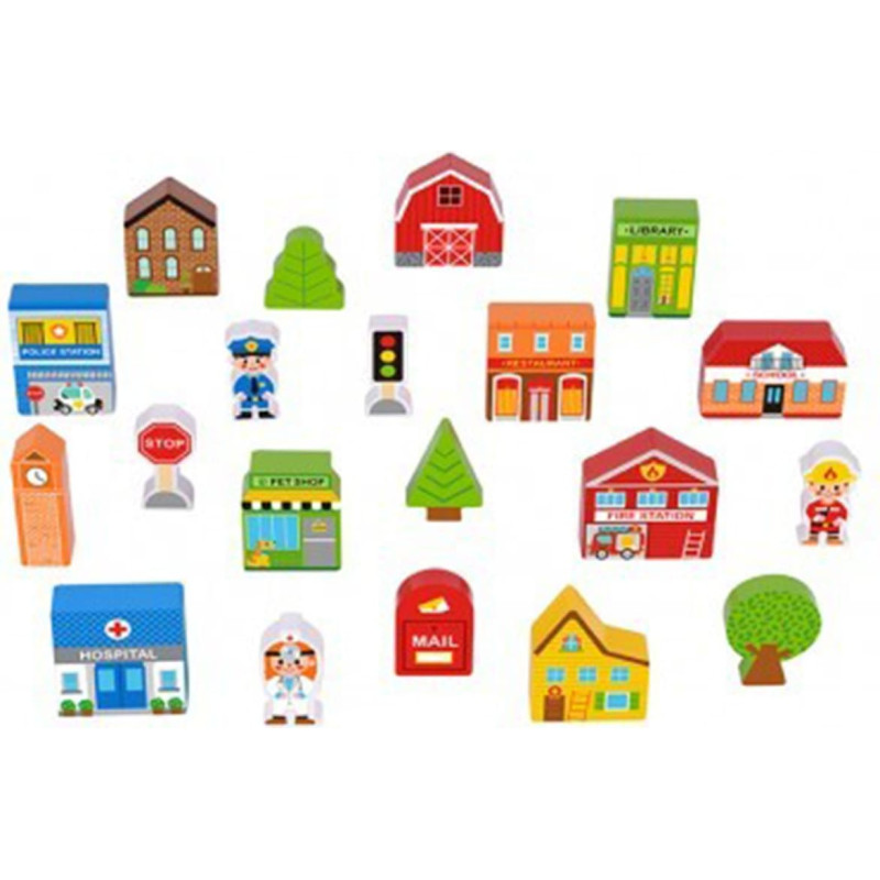 Tooky Toy Drewniany Zestaw Budynków i Figurek Miasto