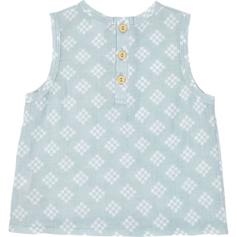 Jaunums mūsu kolekcijā: šis vasaras mazuļu krekliņš bez piedurknēm siltām dienām. Izgatavots no 100% muslīna kokvilnas ar jauku rakstu, tas ir skaists un piemīlīgs vienlaikus. Ērts krekliņš, kuram noteikti jābūt jūsu mazuļa vasaras komplektos. Protams, ar kvalitātes marķējumu Oeko-Tex®.