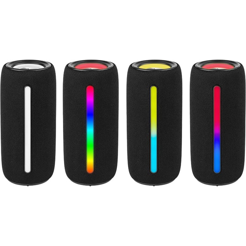 funkcijos Šiuolaikinė TWS technologija – suporuokite garsiakalbius ir mėgaukitės nepriekaištingu garsu Belaidis ir greitas „Bluetooth“ ryšys – nebereikia „kabelinių spagečių“ Patvari baterija – 5 ilgas muzikos valandas FM radijas RGB LED Apsaugos laipsnis IPX5 – puikiai tinka jūsų kelionėms į ežerą USB-C įkrovimo prievadas Kompaktiškas dizainas   Techniniai duomenys Bluetooth: 5.3 Veikimo laikas su akumuliatoriumi (min.): 300 RMS galios rinkinys (W): 10 Perdavimo juosta (Hz – kHz): 100–20 Telefono išvestis: Nr Maitinimas (V): USB prievadas Nuotolinio valdymo pultas: Ne MicroSD: Taip Atsparumo vandeniui klasė: IPX5