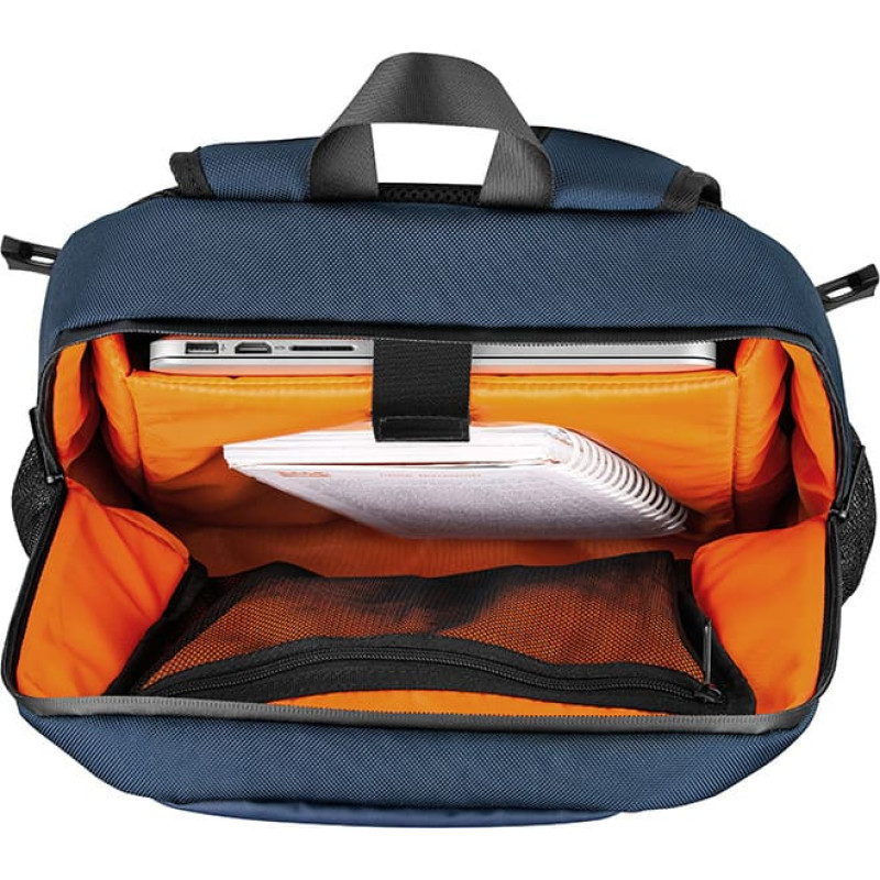Neperšlampama medžiaga Patogūs ir reguliuojami pečių dirželiai Dvigubi užtrauktukai ir papildomos kišenės antgaliams ir rankoms (rašikliai, telefonas, užrašų knygelė) Specialūs skyriai nešiojamam kompiuteriui, ausinėms, pelei ir maitinimo adapteriui Vidinė užtrauktuku užsegama kišenė antgaliams ir bobams Įbrėžimams ir vandeniui atspari medžiaga, sustiprintas dugnas Šoniniai suspaudimo dirželiai Vežimėlio rankovė Specialus nešiojamojo kompiuterio skyrius su kabliuku užsegimu saugumui užtikrinti Minkštas paminkštinimas nugaroje ir pečių juostose patogumui Sustiprinantys elementai atvirose vietose Šoniniai vandens butelių ir skėčio laikikliai Priekinė kišenė su tinkleliu smulkiems daiktams laikyti   Ekrano dydis coliais: 15,6 Darbas su: Užrašų knygelė Matmenys: 470 x 340 x 160 mm Medžiaga: poliesteris Užsegimo tipai: užtrauktukas Sustiprinimas: putplastis