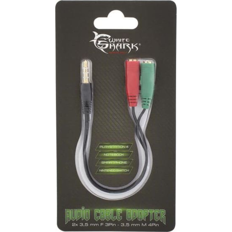 Žaidimo laidas 3,5 mm x 2 3Pin-3,5 mm 4Pin F / M CTIA standartinis kaiščių išdėstymas Įvestis: 1 x 3,5 mm M Išėjimas: 2 x 3,5 mm F Raudona jungtis: mikrofonas Žalia jungtis: laisvų rankų įranga Paauksuotos jungtys Variniai laidai Kabelio ilgis: 0,2m