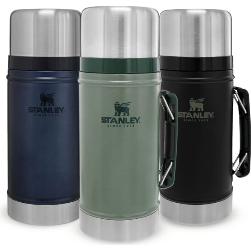 Stanley Legendary Classic termoss ir bestsellers termosu pasaulē. Tam ir sena vēsture, kas aizsākas tālajā 1913.gadā. Stanley termosi vienmēr būs sastopami gan piknikos dabā, gan virtuvēs un birojos. Šis zīmols ir iemantojis cilvēku uzticību jau daudzās paaudzēs. Piepildiet termosu ar zupu, putru vai jebkuru citu aukstu, siltu vai karstu ēdienu, to varat baudīt atrodoties kā mājās, tā arī darbā, birojā, dodoties brīvā dabā, kempingā, ceļojot. Stanley termosi ir ražoti no augstas kvalitātes 18/8 nerūsējoša tērauda. Tie nesatur kaitīgo BPA, ir netoksiski. Termoss ir drošs pret noplūdēm. Termosam ir dubultsienu vakuuma izolācija un ērts rokturis, kas piekļaujas pie termosa korpusa. Savu termosu varat droši mazgāt trauku mazgājamā mašīnā. Siltu uztur: līdz 20 stundām Aukstu uztur: līdz 24 stundām Tilpums: 0.94L Materiāls: nerūsējošais tērauds Izmērs: 12 x 12 x 26.4cm