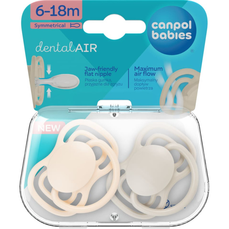 Canpol Babies CANPOL 23/229 Smoczek uspokajający silikonowy symetryczny 6-18m Dental Air 2szt. kremowy