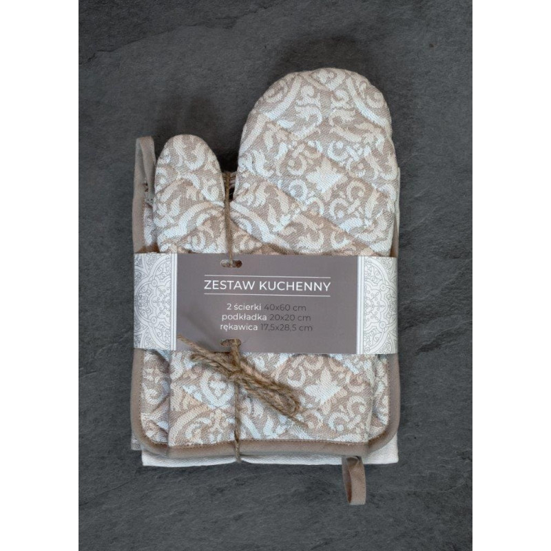 KITCHEN SET 4-PIECES PATTERN 001 ETHNO /2 TOWELS 40x60, MAT 20x20 cm, GLOVE 17.5x28.5/