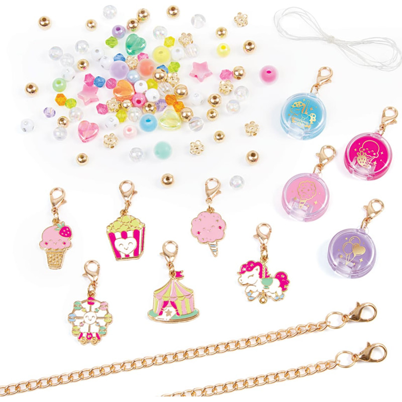„Make It Real“ siekia įkvėpti! Kurk originalias apyrankes su pakabučiais ir pasinerk į nostalgiškai smagią atrakcionų parko nuotaiką! Rinkinyje yra keturi pakabučiai su braškių kvapo lūpų blizgiu, kurie bus ne tik puiki apyrankės puošmena, bet ir visada po ranka esanti makiažo priemonė Pakuotė su iš tikrųjų besisukančiu apžvalgos ratu rinkiniui suteikia dar daugiau išskirtinumo Šis rinkinys – šauni dovana stilingiems ir kūrybingiems vaikams tiek gimtadienio, tiek bet kuria kita proga!
