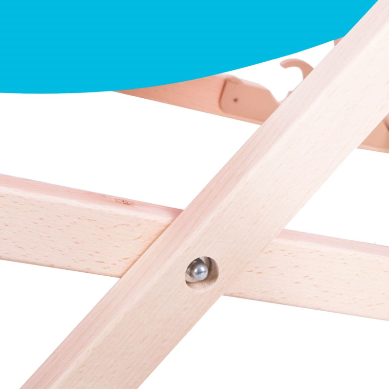 Tinka viešam naudojimui Atitinka standartus PN-EN 581-1:2017-04 ir PN-EN 581 1-2:2016-02 Rėmas pagamintas iš patvarios buko medienos 3 pakopų reguliavimas Saugus, nekeičiamas atlošo audinys Tvirtas apsauginis užraktas Poliruoti, suapvalinti elementai PARAMETRAI: Sulankstytas šezlongas: 58 x 124 cm Svoris: 4 kg Juostos storis: 3,1 cm Keliamoji galia: 120 kg Audinys: mėlynas