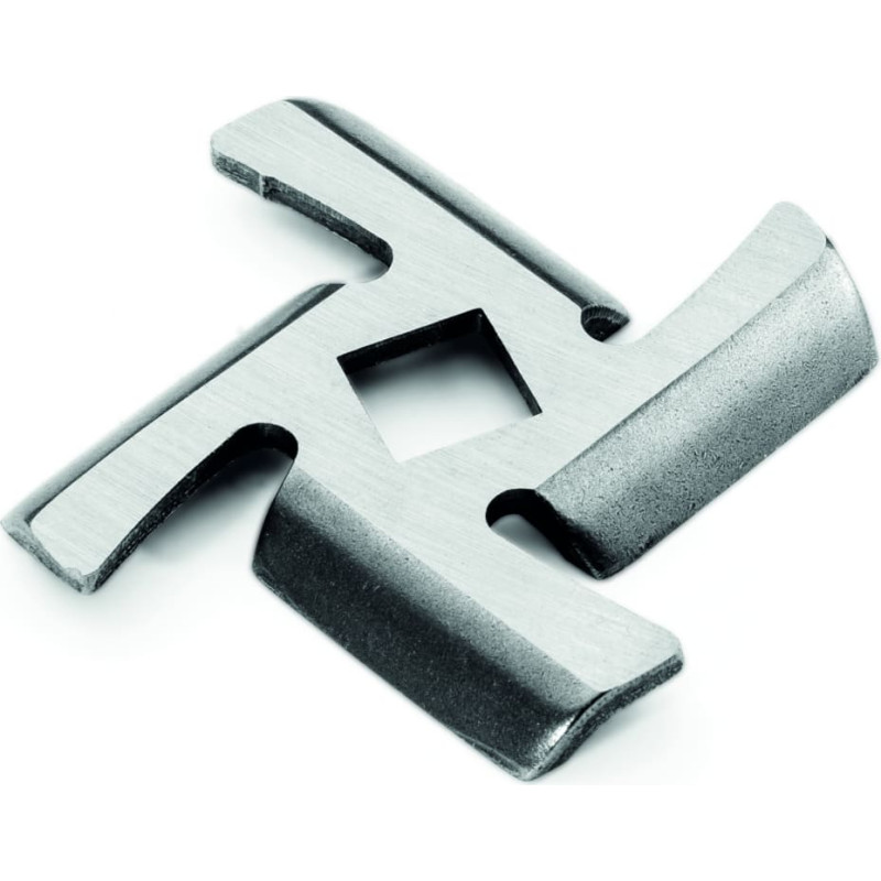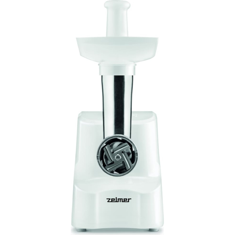 Didelio efektyvumo variklis max 1000W Įjungimo/išjungimo jungiklis su atbulinės eigos funkcija Zelmer jungtis Vienpusis peiliukas 1,3 kg/min šlifavimo našumas 2 vnt metalinio tinklelio sietas Dešros adapteris