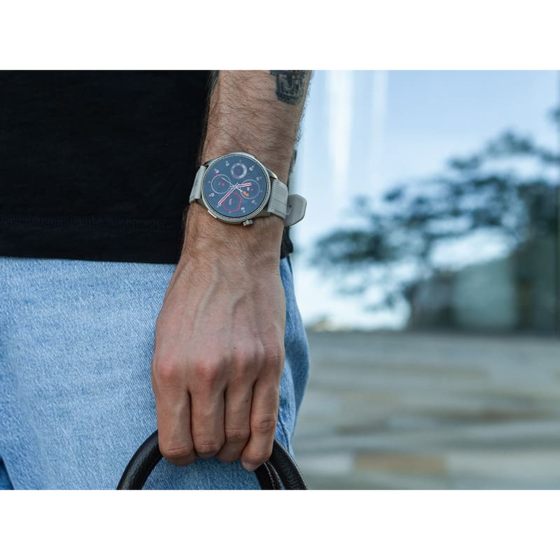 1,43 colio AMOLED ekranas Visas jutiklinis ekranas Belaidis įkrovimas Bluetooth skambučiai Bluetooth 5.3 1 atm atsparumas vandeniui Kelios funkcijos: kraujospūdžio matavimas, širdies ritmo matavimas, miego monitorius, akselerometras, sporto režimai, žingsnių skaitiklis Programų pranešimai Balso asistentas Muzikos valdymas 290 mAh baterija Speciali programa „DaFit“.