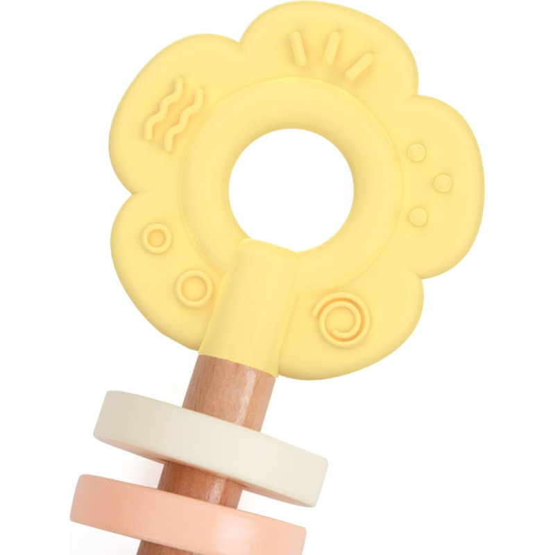 Classic World Drewniana Pastelowa Grzechotka Gryzak 2w1 Kwiatuszek