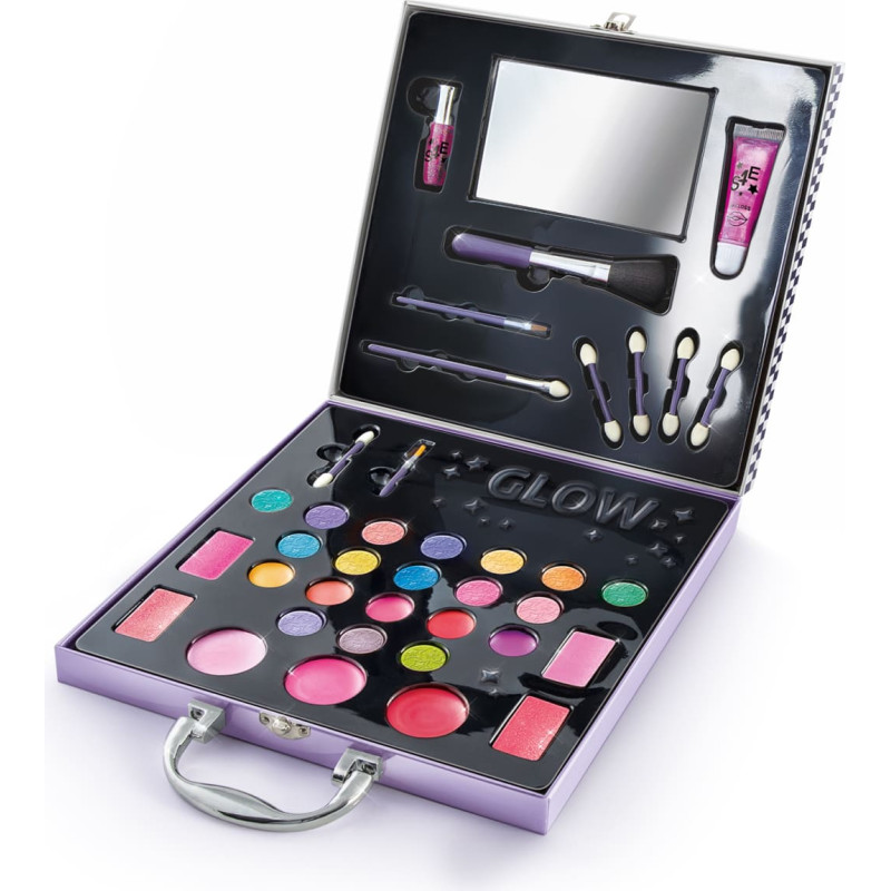 Tikra profesionali makiažo studija su veidrodžiu. Sukurk savo stilių su visais pridedamais šauniais priedais: akių šešėliais, lūpų blizgiu, skaistalais ir įvairiais šepetėliais. Pasiimk ją bet kur!