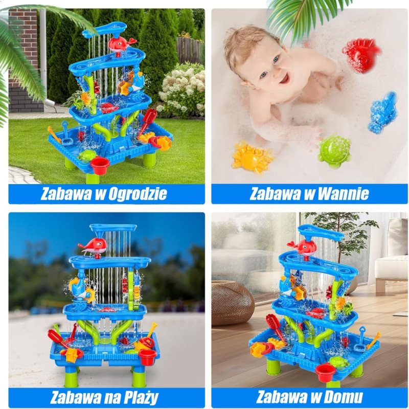 Woopie Stolik Wodny 4w1 Piaskownica Wodospad XL 4-Poziomowy Delfin
