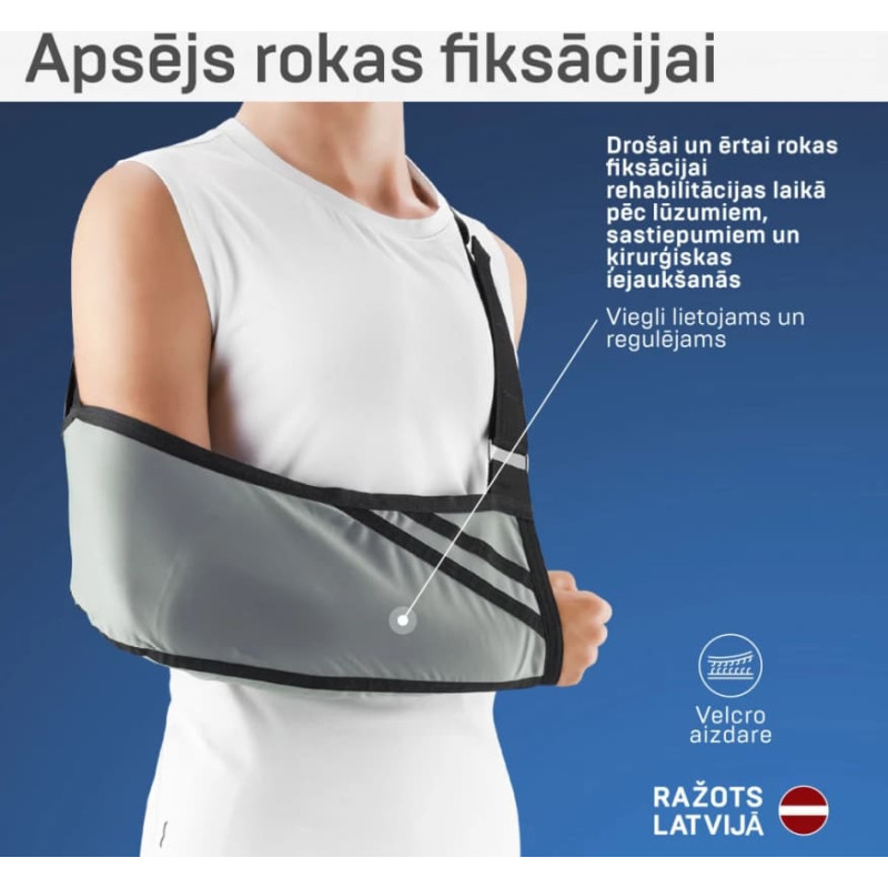 Apsējs paredzēts drošai un ērtai rokas fiksācijai rehabilitācijas periodā pēc lūzumiem, sastiepumiem vai ķirurģiskas iejaukšanās. Materiāls: 100% poliamīds.