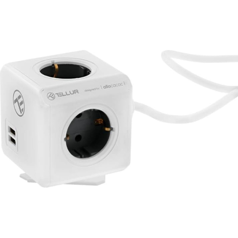 Tellur Power Cube Extended, Power strip 4 Outlets + 2xUSB ports, 1.5m cable white